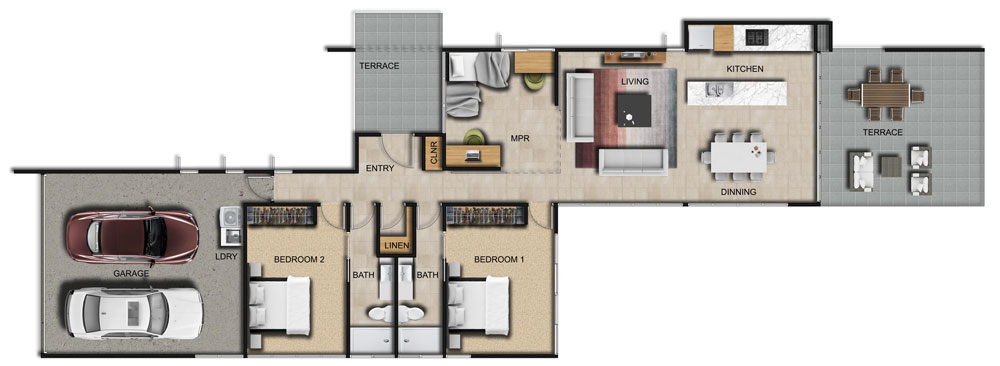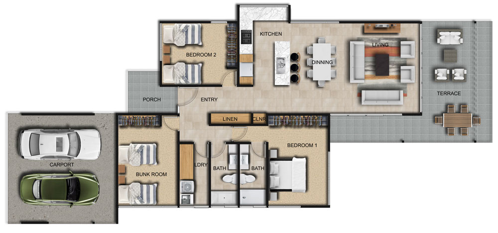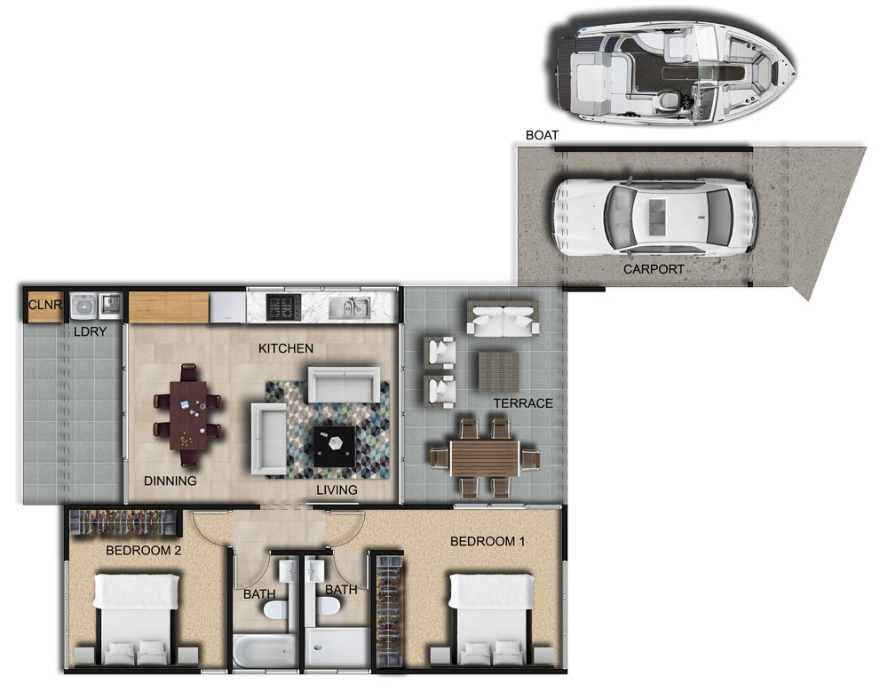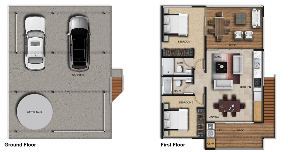 Our free custom home design service provides buyers with a set of custom-designed home plans that makes the building process easy. At Rules Beach, there is no need to compromise on your dream, whatever your budget, site and lifestyle. With a prominent Australian architect at your disposal with over 24 years of experience, Shane Thompson Architects has created a handful of beautiful floor designs. Spacious two and three-bedroom home designs are available, all featuring unique floor plans and spotlighting open plan kitchen, living, and dining with multiple deck and terrace options. You can also arrange to have a unique design created for your ideal home.
